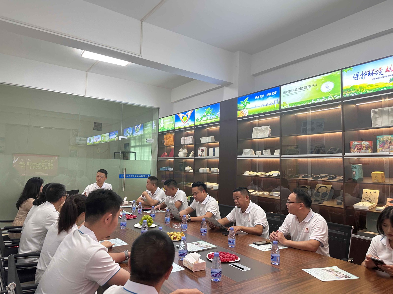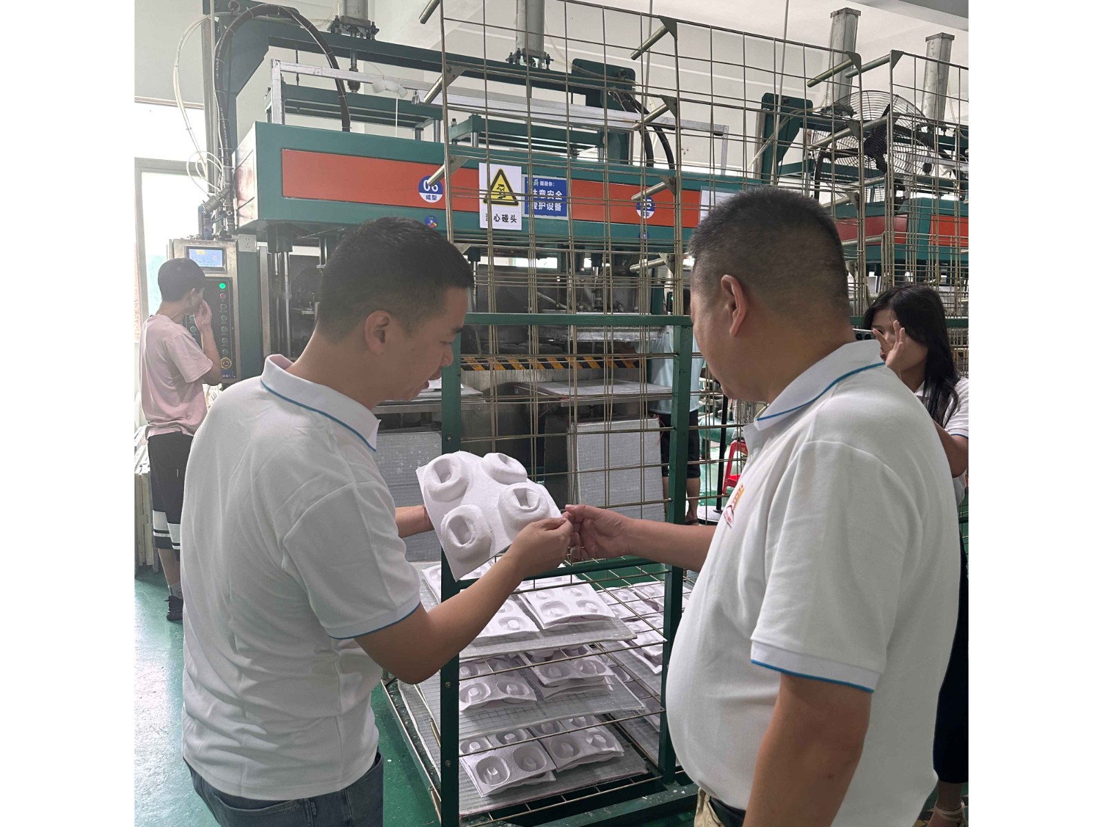 先后我们一起参观了模具制造、打浆、水模成型、热压整形、切边验货等一系列生产流程,收获了大家的一致认可,并对金美纸塑在环保领域的发展态势,予以了充分的肯定,也表示将始终关心和支持我司的工作。